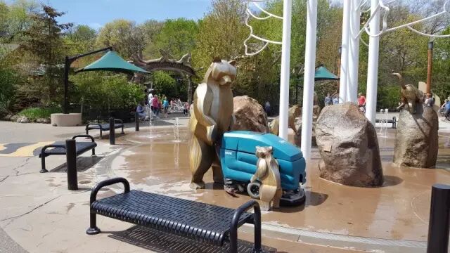 電瓶電源消除了廢氣排放,并實現低噪音操作,雙邊刷增加掃地寬度和工作效率,可加速清潔娛樂場所地面。